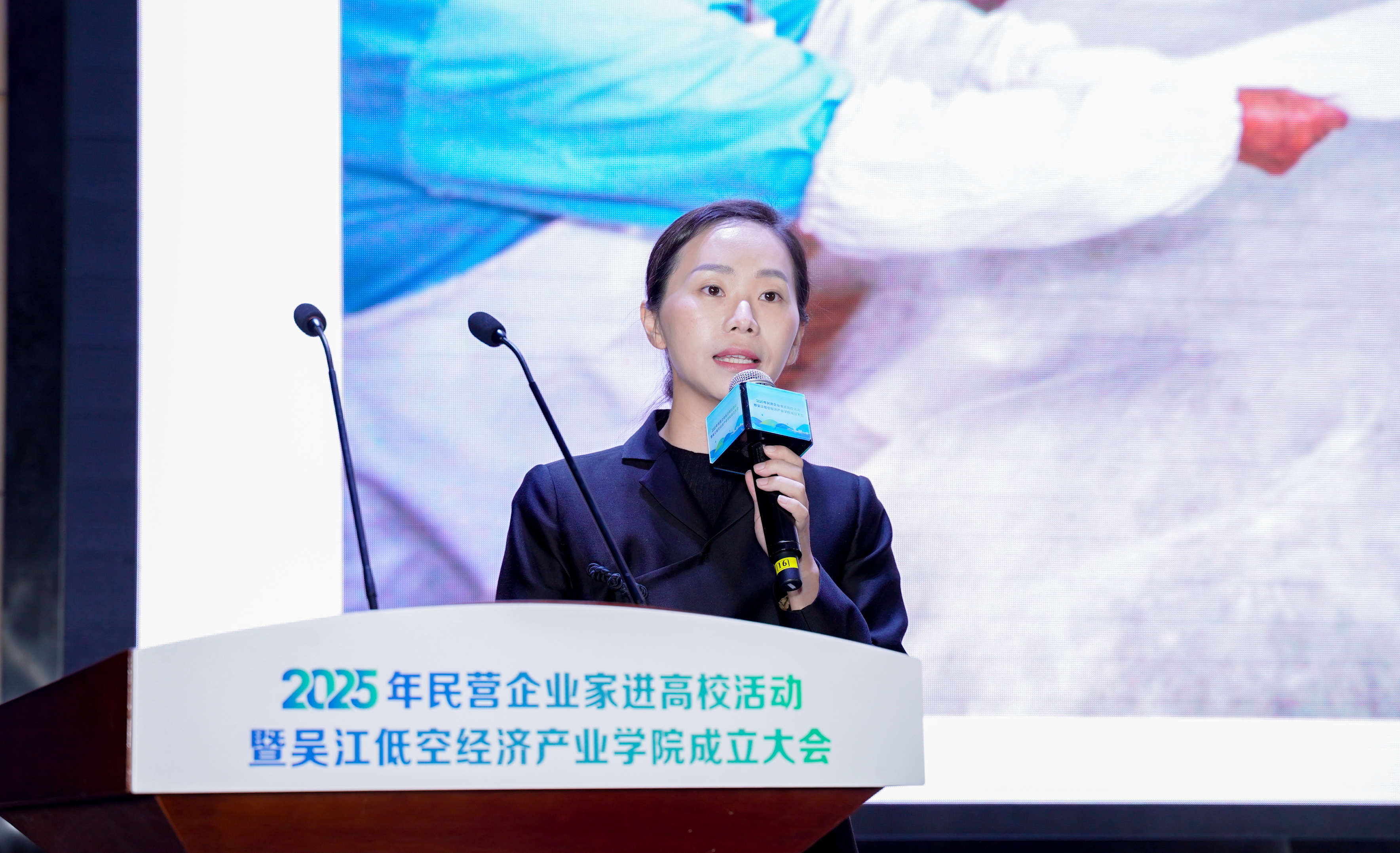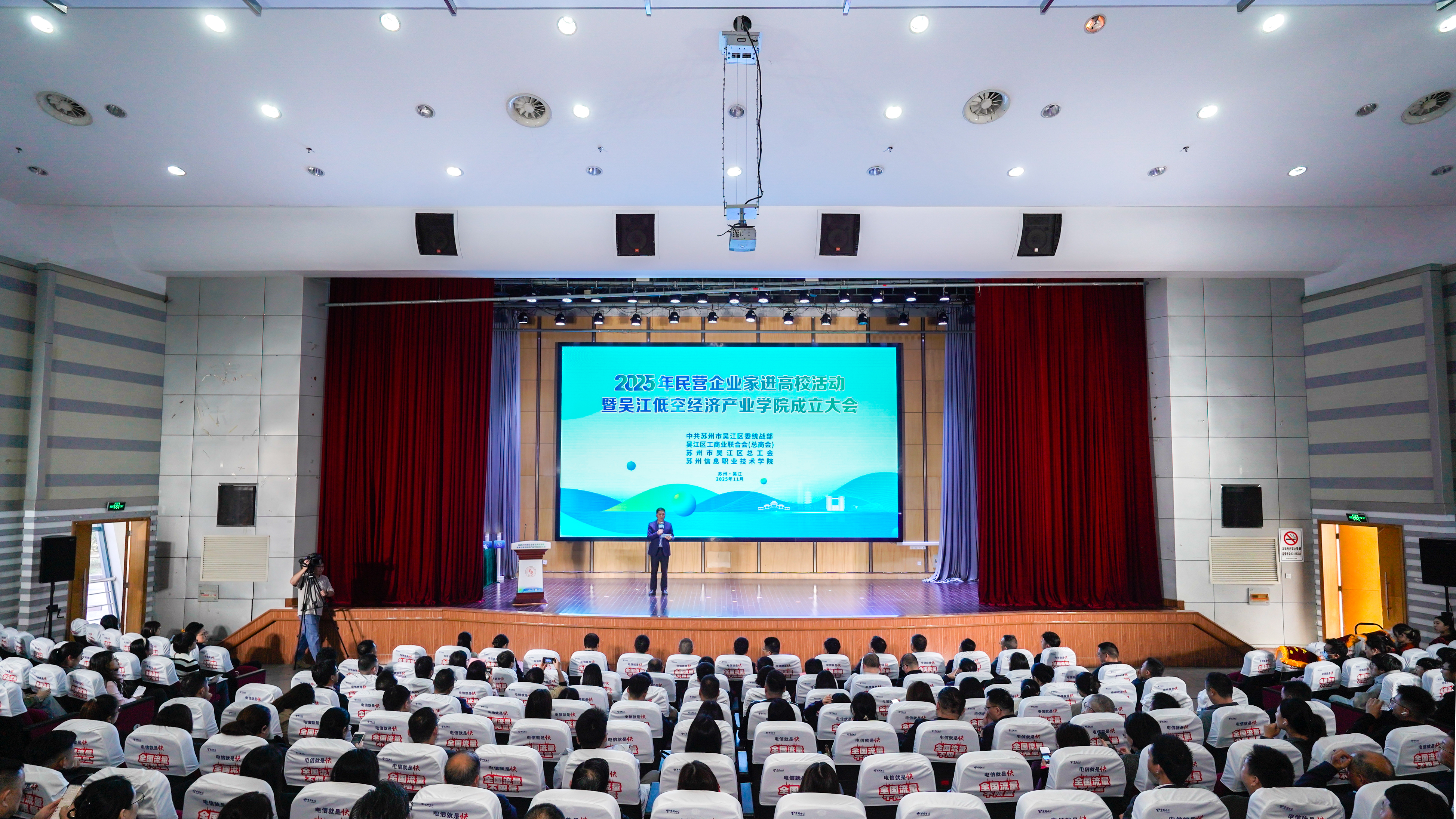 11月10日,由吴江区委统战部、区工商联、区总工会、我院联合主办的“2025年民营企业家进高校活动暨吴江低空经济产业学院成立大会”在我院举行。区委常委、统战部部长陈伟杰,区政协副主席、工商联主席沈向东,我院党委书记臧其林,党委副书记、院长陈德斌,以及区发改委、工信局、人社局、总工会、我院相关领导出席,活动由区委统战部副部长、区工商联党组书记沈春荣主持,全区60余家重点企业代表、商会负责人及我院师生代表共计400余人参与。活动以“产教融合、赋能未来”为主题,通过九大议程搭建多方协作平台。