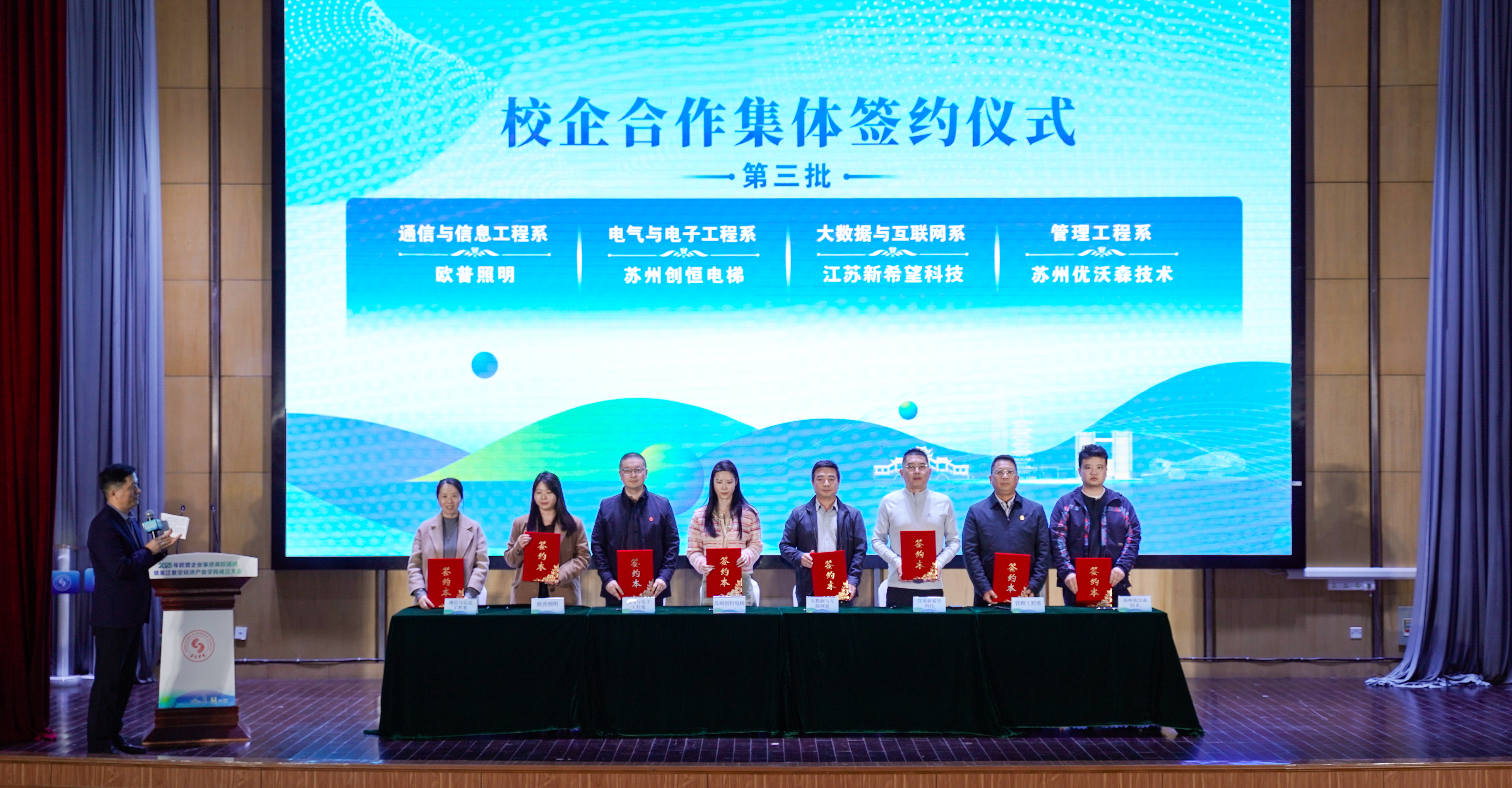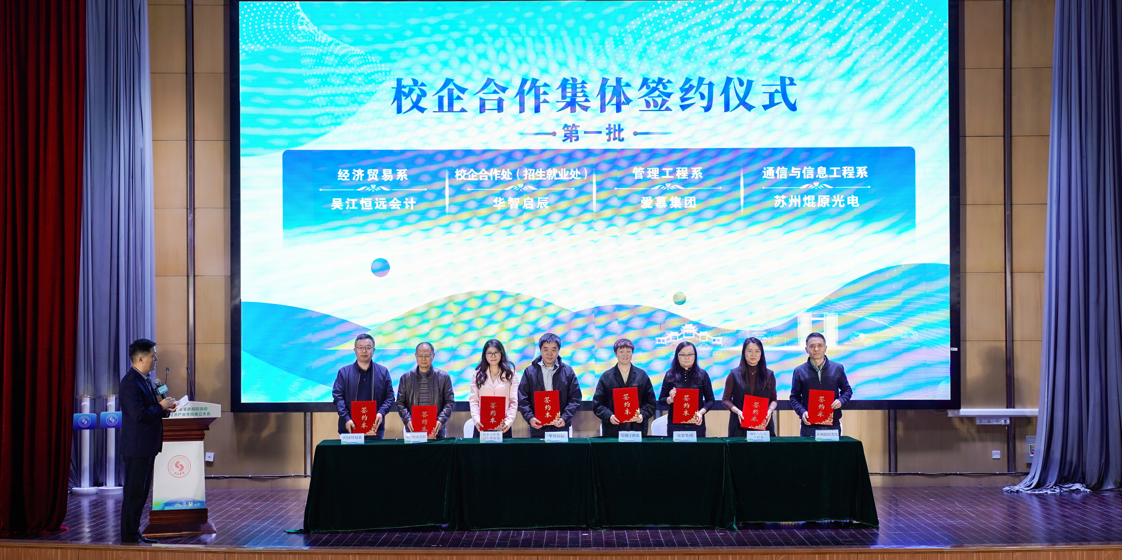 在校企集体签约环节,12家企业与我院各系签署战略合作协议,涵盖光电技术、数字科技、智能制造等领域的产教融合项目。