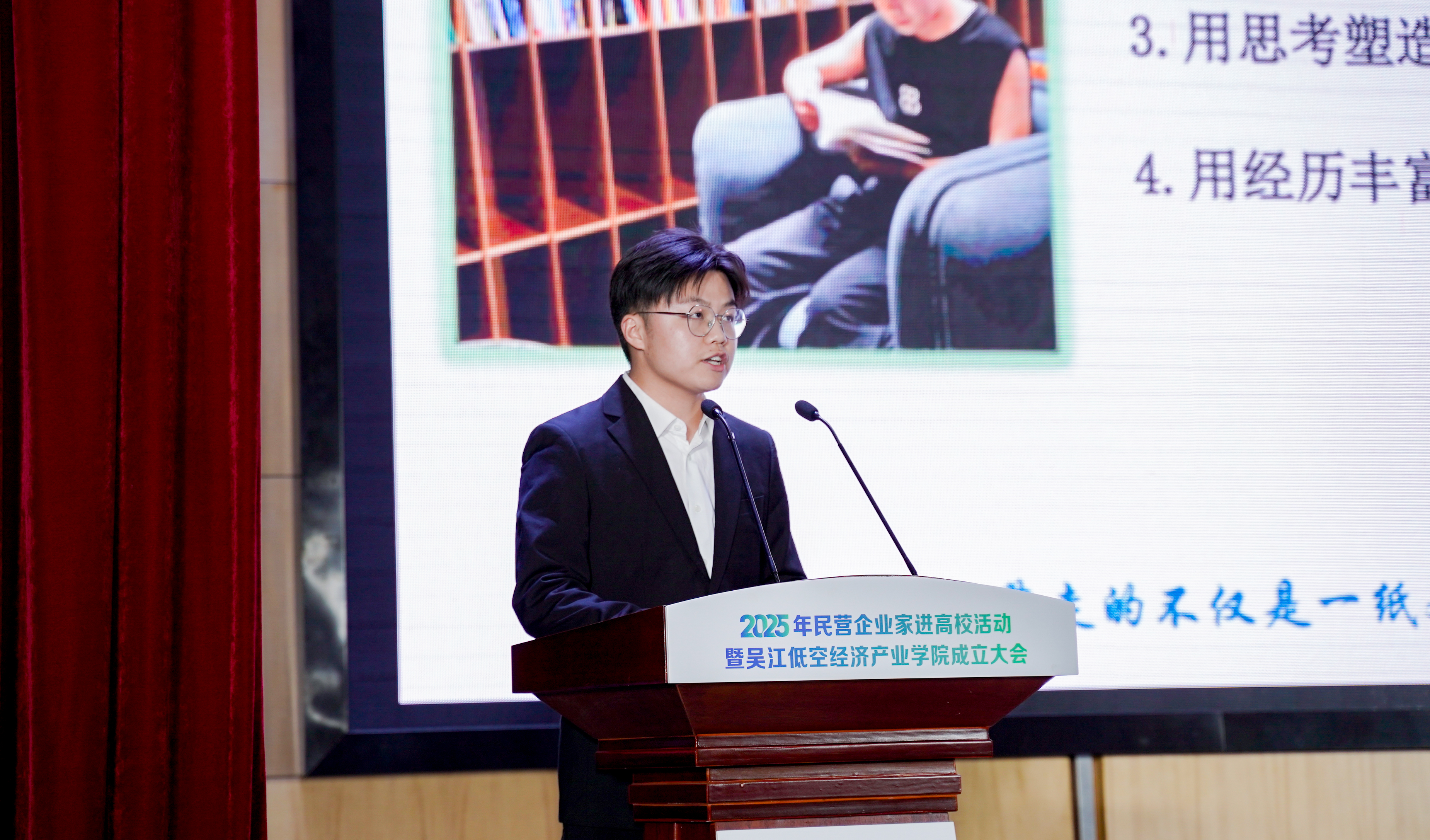 区委常委、统战部部长陈伟杰在讲话中提三点希望:一是要抓住比较优势,在“适配”中破局,当前,吴江正在高质量建设人才服务体系,希望企业和个人坚定信心,增强集体粘性,对照产业图谱主动适配人才供需,在吴江这片热土上创造更多属于自己的“高光时刻”;二是要强化科技创新,在“联系”中发展,希望各方都要具备“联系”能力,打破思想、地域、行业、岗位、专业的局限性,优化产学研协同创新生态,深化科技创新,不断学习新知识,提升核心竞争力;三是要秉持步步为营,在“跬步”中登高,希望青年学子们接轨社会时,以理性信心锚定方向,以创新实干夯实根基,以笃行跬步接续发展,步步登高,实现自己的人生价值。