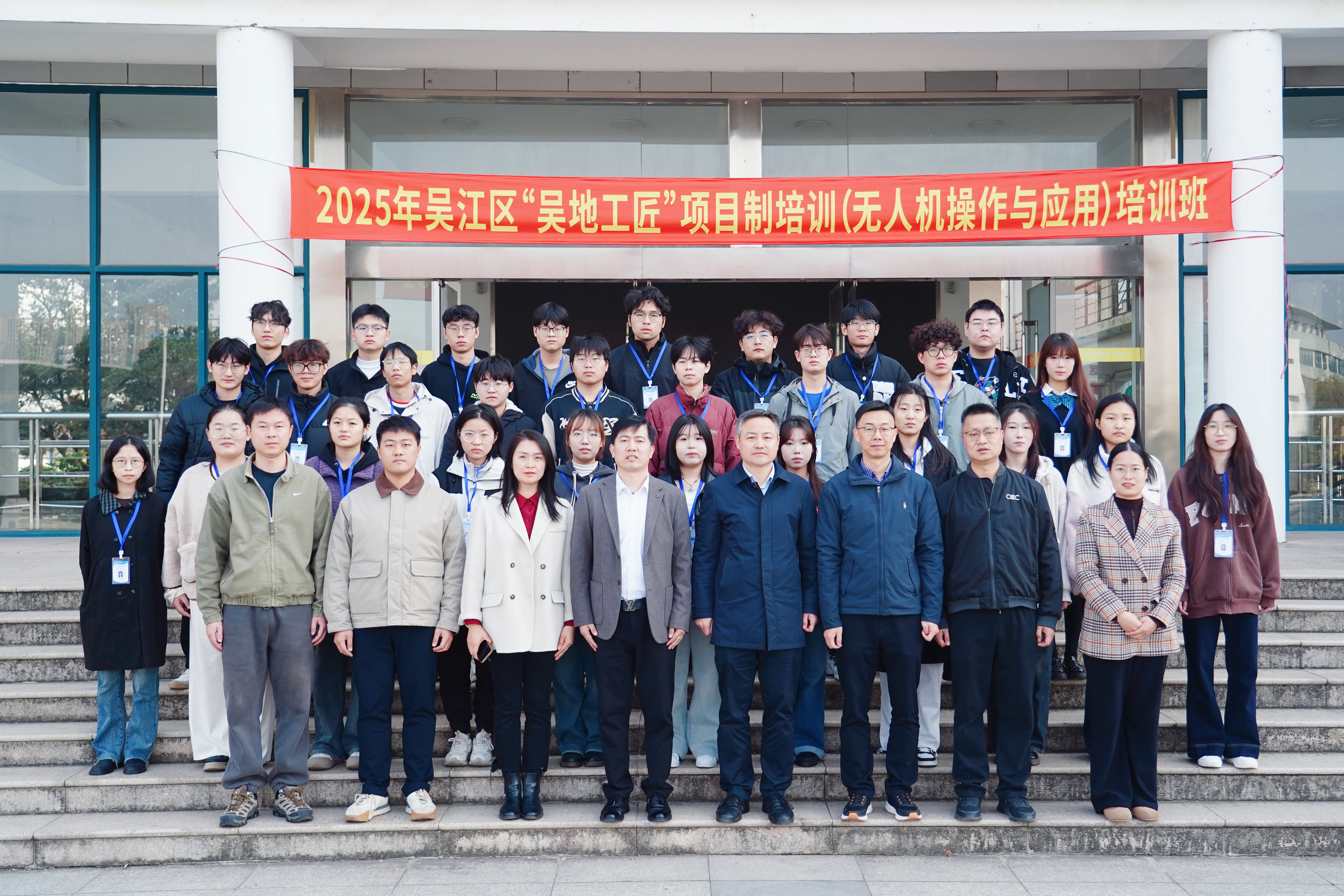 12月1日,2025年吴江区“吴地工匠”项目制培训(无人机操作与应用)在我院正式开班。我院党委委员、副院长张成,苏州市高级人才太湖培训中心(苏州江村学院)培训部主任盛华,苏州航家航空科技发展有限公司党支部书记、总经理王志超,我院通信与信息工程系、继续教育学院负责同志,培训班任课教师、全体学员参加开班仪式。