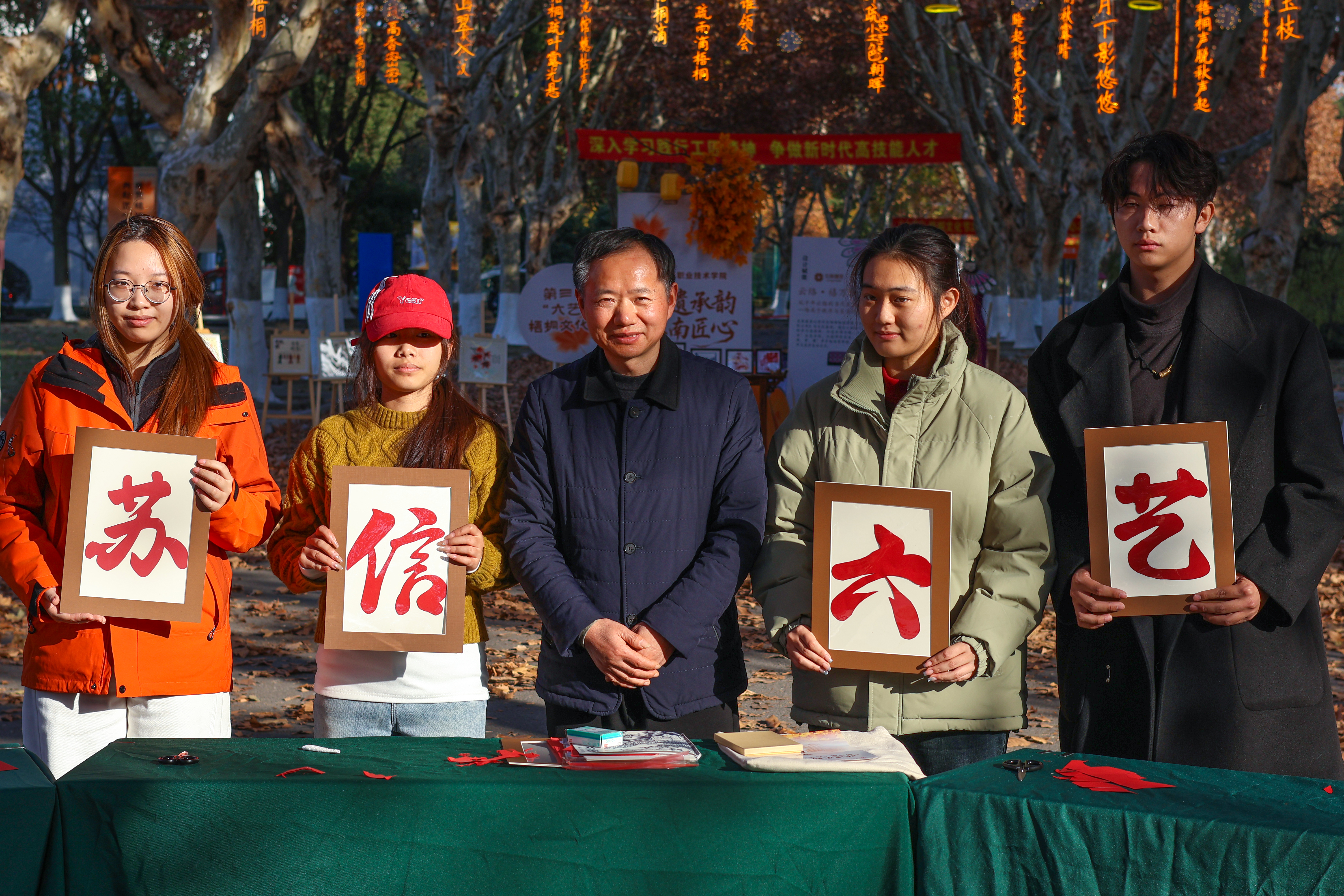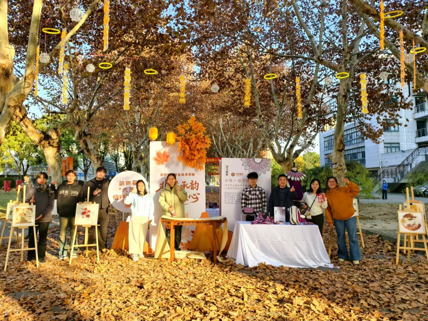 秋意深浓,冬寒微醺,苏信校园仿若一幅斑斓画卷,12月9日,我院举行第三届“六艺”梧桐文化节,以“非遗承韵 江南匠心”为主题,在梧桐大道开启一场与非遗古韵、江南匠心的诗意邂逅。苏州龙泉禧里丝绸科技有限公司创始人黄秋停、同里剪纸非遗传承人计建明受邀出席,学院领导,中层干部,学工、 团委条线教职工,在校师生代表参加。