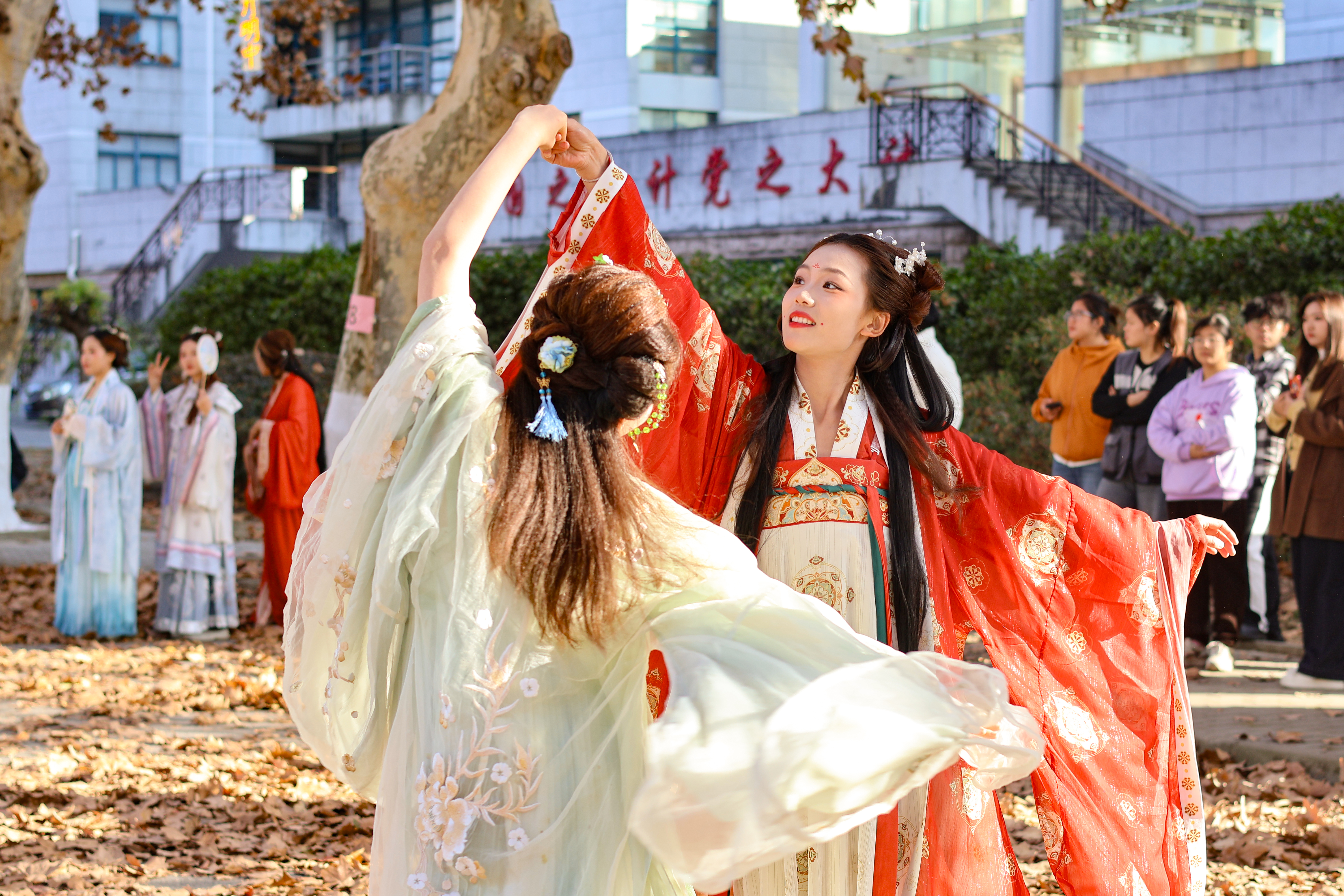 由经济贸易系同学表演的《千年霓裳》让现场师生在歌声中穿越时空,在华夏衣冠中感受千年历史。
