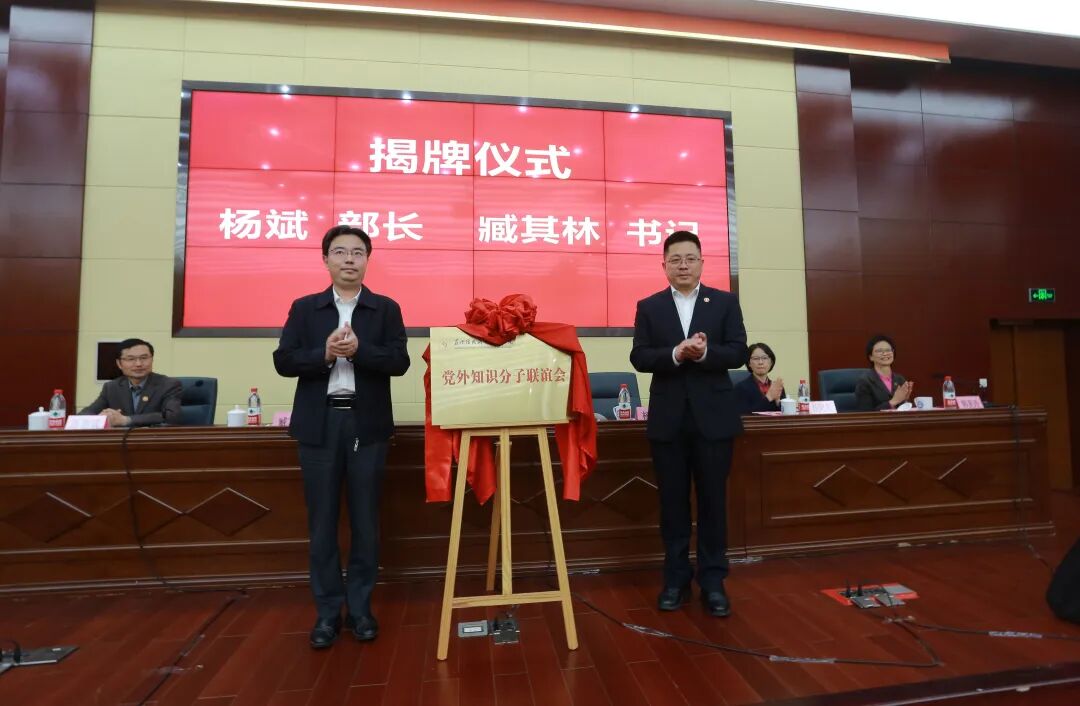 吴江区委常委、统战部部长、组织部部长杨斌,学院党委书记臧其林,共同为“苏州信息职业技术学院党外知识分子联谊会”揭牌。