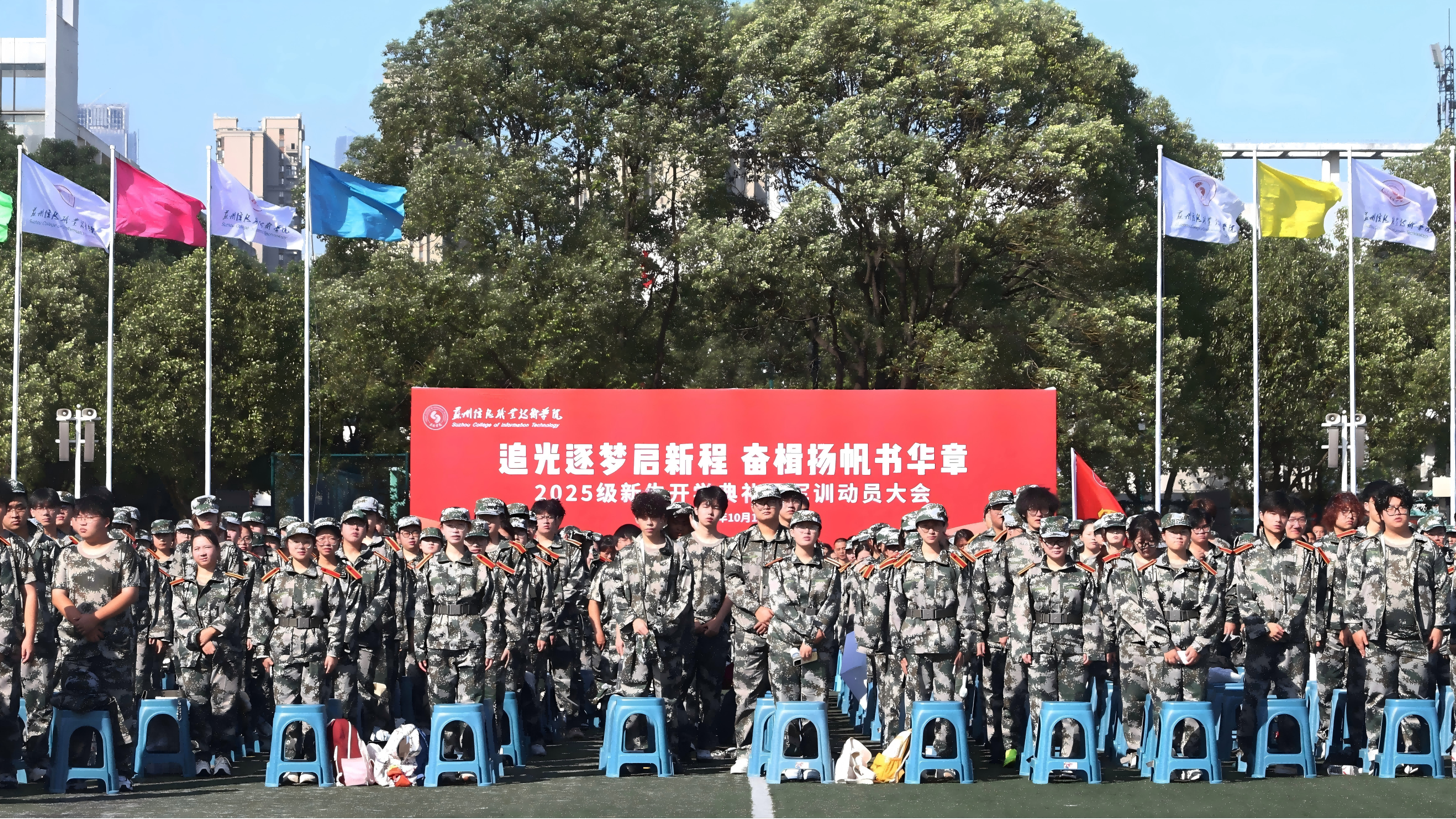 10月10日,我院隆重举行2025级新生开学典礼暨军训动员大会,欢迎来自全国各地的新同学加入苏州信息职业学院大家庭,开启求学逐梦的人生新旅程。参训部队领导和教官、学院全体教职工、2025级全体新同学出席大会。